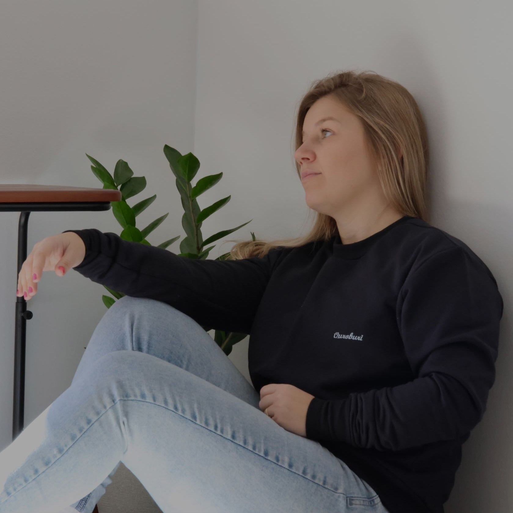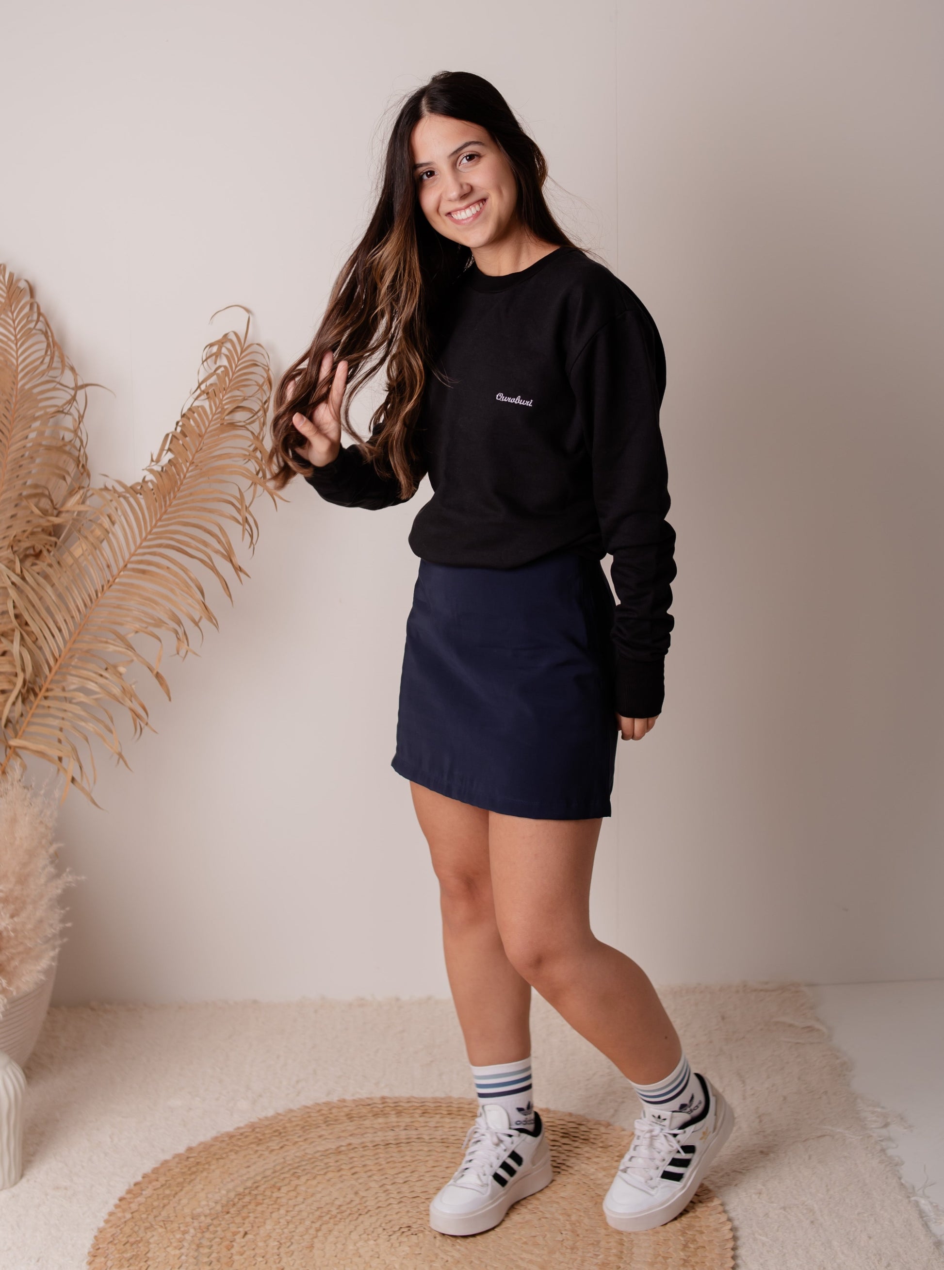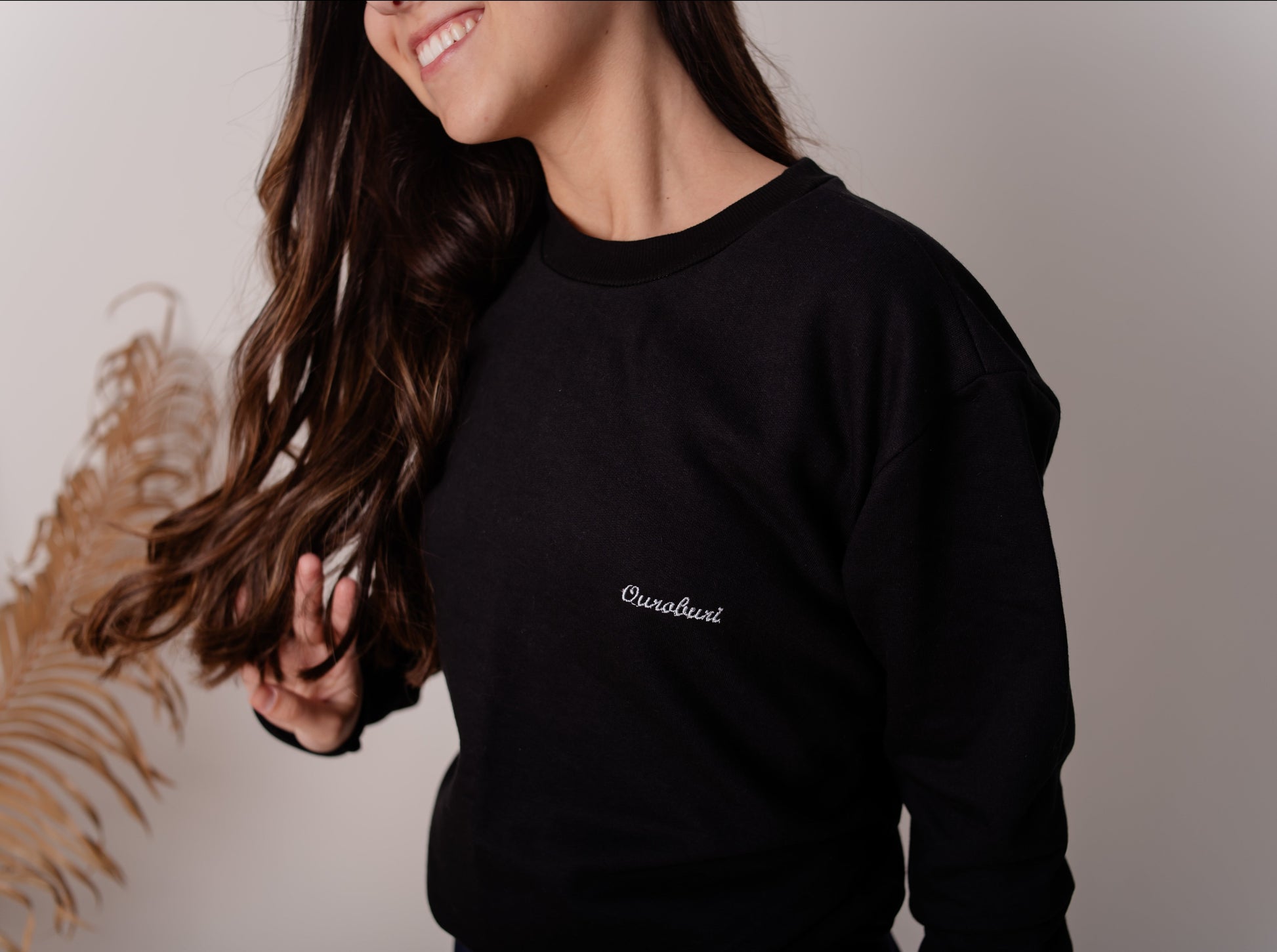 Blusão preto básico em moletom com detalhe bordado